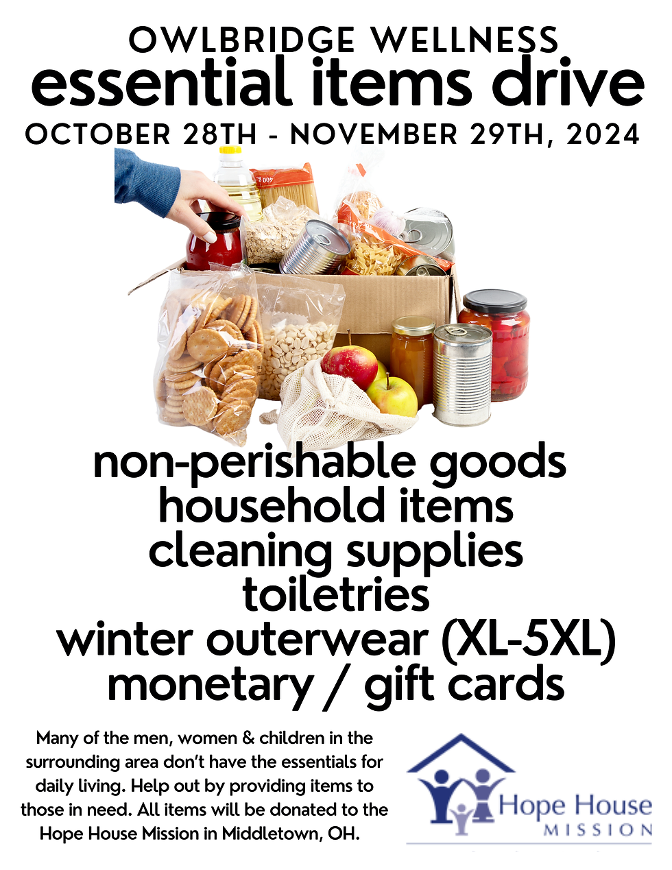Many of the men, women & children in the surrounding area don't have the essentials for daily living. Help out by providing items to those in need. All items will be donated to the Hope House Mission in Middletown, OH.